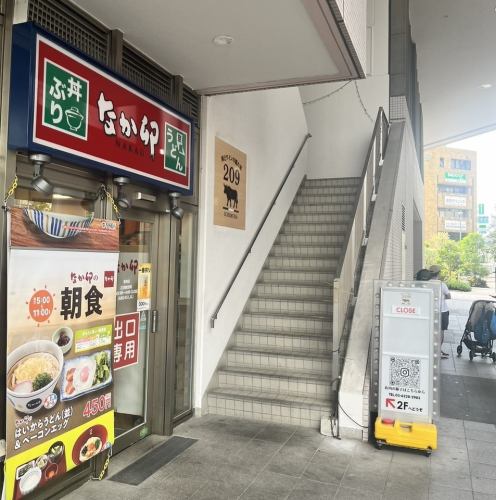 駅近、徒歩10秒の好立地で待ち合わせにも打って付け。なか卯さんの右手の階段より2Fにお越しください。